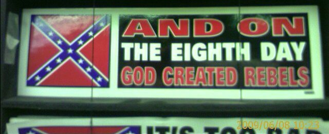 Within the Domination of Eiler's subject nation "United States of America", there's a lot of lip service given to rebellion. Various parts of the Domination still fly the rebel flag of "Confederate States of America" every chance they get. This practice actually starts about 30 miles southwest of Boston-Massachusetts, but is most prevalent further south. For example, Mississippi and Georgia have rebel-style "stars and bars" in their state flags. And this year Texas is still talking about its right to secede. Rebellions within "United States" have justified themselves by opposing excessive power held by nation-states. This seems to be the justification for a T-shirt with the Confederate battle flag plus a slogan: "If this t-shirt offends you, you need a history lesson". Presumably these freelance history teachers wish to emphasize, "Confederate States" rebelled to defend states' rights, not slavery. After all, most of the Confederate soldiers weren't slaveholders. The Domination of Eiler appreciates the need to oppose national power on occasion. It allows its citizens to organize as they see fit, as long as they acknowledge a superior authority for the good of the world. Modern nation-states don't do that. Unfortunately, neither did historical rebel-states. Whatever its political justification, each governmental entity will ultimately be remembered by what it tried to accomplish. "Confederate States" had a debatably-valid position about political power, but they used it to defend human slavery. Those who hold this up as a political model, are the ones who need the history lesson. |
