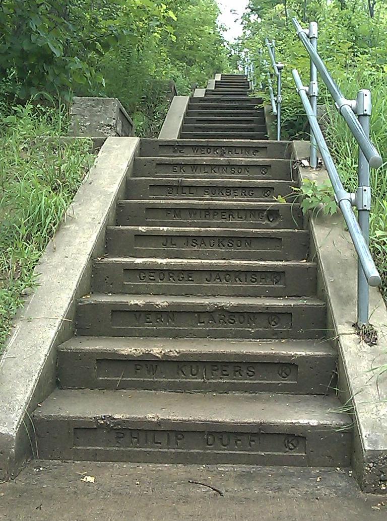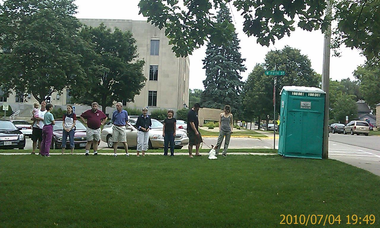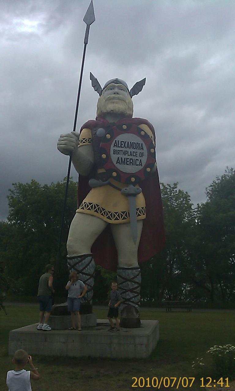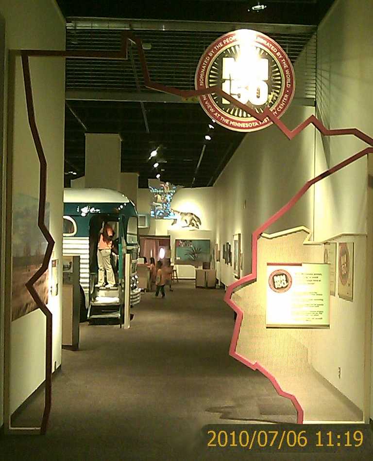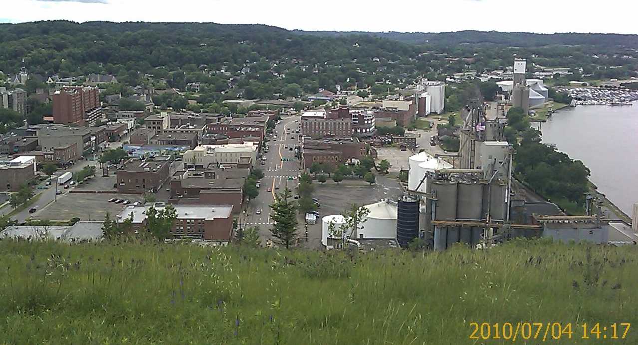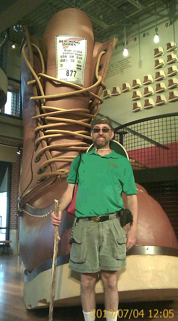 On Saturday the expedition broke loose from Chippewa Falls-Wisconsin and subjugated all points of interest in nearby Eau Claire within two hours. A historical museum (mostly about logging) and a logging museum both submitted. After that, the expedition contemplated a cheap and sensible two-day occupation of Eau Claire and its hotels, shopping mall, and practically abandoned college campus, to let the holiday traffic die down. The expedition then instead set off on back roads toward Pepin-Wisconsin and the Mississippi River Road. Pepin turned out to resemble one of the circles of Hell, only Hell has more room for people who want to spend some time. Motorcyclists roaring past every hotel room in town weren't a problem - only because every hotel was booked solid. Its history museum submitted five minutes of fun, though. Famous citizen, author Laura Ingalls Wilder ("Little Home on the Prairie"): check. Pepin's Visitor Center was helpful, but it panicked the Domination's expedition into arranging expensive lodgings at cheap hotel in nearby Red Wing-Minnesota, sight unseen. And so Rodeway Inn provided a room with functioning air conditioner (after much haggling) - plus unexpected indoor pools, free breakfast, and a good cheap steakhouse and a pottery museum just across the parking lot. Oh, let's stay here longer, it's a holiday. On Sunday morning, the Domination patrol put on Brazilian national colors and set out on foot, a mile into town. Adverse weather and massive hiking were both envisioned for the day, and the bike would only have gotten wet and in the way. First, church. One church announced a 10:30 service. The patrol got there ten minutes early, but they'd secretly started the ceremony twenty minutes before that... Red Wing is one of those towns where people want to get church out of the way on summer boating Sundays. Every other church near the center of town either has 9 am service or is secretly closed. Is that how we honor the One Maker here, with the margins of our time? The local boot and pottery industries of Red Wing each have their own museums, attached to shopping. A local Ski Jump Hall of Fame is hidden inside a hotel. These were all open, and gave enough town history to describe the town name. It seems the local chiefs of the Sioux/Dakota First Nations used to dye swan wings red, as badges of office. Historic and military museums in town were closed for this historic patriotic day. However, nature trails at the historic museum submitted a new hiking stick, which came in handy for hiking more trails at nearby Barn's Bluff and conquering a nice view. The patrol had to dodge some thunderstorms, but one cheap bar helped. Restaurants were haphazardly open. Brickhouse Pub and Grille gave the winning bid on dinner: pizza (not frozen) and beer. There's a free concert in town tonight, at a bandshell around 7 pm. There are fireworks across the river, visible from hotel room window around 10 pm. Despite obstacles, life is likely to be good all day. All praise to the One Maker, whose day every Sunday is in Domination of Eiler practice. The Domination is trying out a new custom for this expedition: Spend Sunday night too. This usually harvests a blessing from the One Maker, if only a nice boring Sunday afternoon as in Cambridge-Ohio. But today in Red Wing hasn't been boring. | ||||