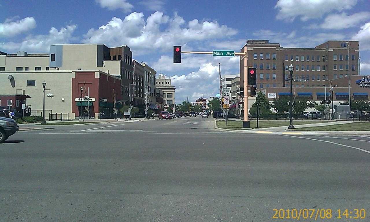 Fargo-North Dakota and Moorhead-Minnesota are twin cities along the Red River. Unlike a certain other pair of Twin Cities, these may be easily patrolled by bicycle in one day; no point in the metropolis is more than five miles from downtown. Bicycle patrols are especially fun when that cold front the Domination's east coast is waiting for has passed North Dakota. Admittedly, "cold" on the Great Plains in summer is still 80 Fahrenheit degrees.