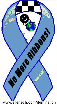 Besides, the Domination's citizenry (well, Jimmy the bartender at least) has expressed an interest in buying a Ribbon that makes fun of other ribbons. Note to Domination engineering staff: We need a Ribbon that says, "No More Ribbons!" In Domination colors, of course. This, of course, will be the Last Ribbon Ever to be magnetically hooked onto people's cars. The Domination of Eiler hereby declares all future ribbon-shape icons, in whatever form, to be acts of rebellion against the Domination. No More Ribbons!