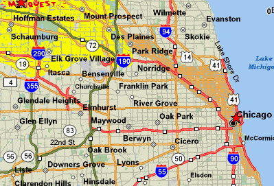 - "Chicago River North Branch Trail" and scenic "Chicago Lakefront Trail" both useful for close approach. The trails are connected by eight miles of urban street, with signs posted to direct the cyclists away from the main roads. Not the most direct approach, but good enough.