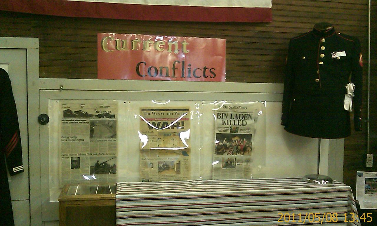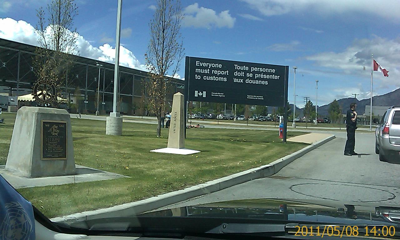Church in Chelan: Disciples of Christ. They seem to thrive in the inter-mountain West. This church worshipped in much the same way as 100 years ago. Next target: Okanoagan-Washington, up U.S. Highway 97. It has a historical museum, open seven days a week... but only after Memorial Day. Target of opportunity: the Depot Museum in Oroville-Washington. The docent was very surprised to find a tourist in her museum today, but she got used to it. That museum has rotating exhibits; this year's is war memorabilia, from the Civil War to last week's big news in the paper. By then there was practically nothing between the advancing force and Canada. So, the expedition crossed the border. Canadian border authorities are much less suspicious of travellers who say they have a job. Though admittedly, they might have been distracted by two columns of peace marchers meeting at the border. Had a ceremonial beer from a brewery pub in Osoyoos, just 3 km across the border. Judging from tourist brochures, every town along this stretch of road fancies itself a wine country resort town. After today's advances, the expedition now has five days to accomplish about ten hours of driving. This could be a very lazy vacation. Canadian wine country actually looks pretty impressive. The nearby American side is ranch country instead. The Canadian side has some winery bed-and-breakfasts, which show potential. But tonight the expedition pressed on to the double-lakefront town. That could have been a miscalculation. Fancy barracks in run-down town... Penticton-BC has two different lakefronts, with about 5 km of strip malls in between. The expedition chose a fancy bed-and-breakfast (Casa Grande Inn) along the northern "downtown" lakefront, but on Sunday night it's like the neutron bomb went off there. The life is all at the strip mall district.