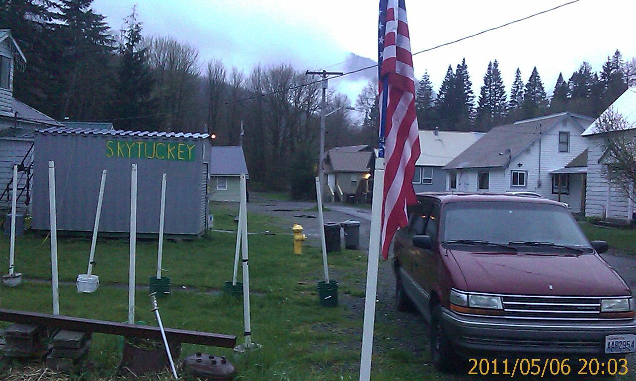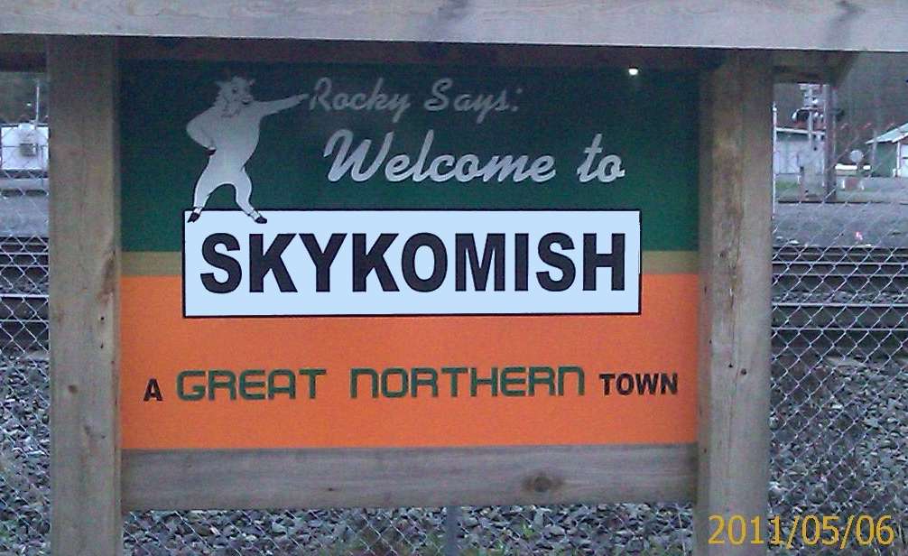 Expedition went straight from work to previously-arranged quarters in Skykomish-Washington. This took an hour of driving, just to get to a place in the same county. It's (mostly) not that roads were slow; at 60 miles per hour, the Vehicle of Dominance was the slowest thing on the twisty mountain road. The county's just big, from seashore to mountains. A hotel on the way in Gold Key-Washington submitted lowest bid, but it was karaoke night at that hotel bar, and they weren't confident about noise level. Neither is Skykomish, but their hotel at least said it's their policy to tell people to be quiet. Tonight is a quiet Friday night in Skykomish anyway. Five patrons at the only bar in town, even counting the two playing ping pong in the back room. One or two patrons in the restaurant down the street, which is what tonight's hotel offers instead of karaoke. Bar for fried seafood with potato wedges ("Jo Jo's"), restaurant for pie. Trains are an exception to the quiet. The town of Skykomish was created alongside the Great Northern Railroad where it crosses Stevens Pass to get to Seattle. The whole town is practicaly a historic site. The railroad is still very active. (Amtrak even comes through here. And Amtrak hardly counts as active.) Great Northern practically owns this town. Which isn't saying much, because it's about six blocks long. Still, they used to illegally dump waste oil here, or release oil and heavy metals into the environment due to historic railroad activities, depending on whom you ask. The town is still recovering. Hence the lack of businesses. Tourists are an oddity here too, at least this time of year. Which is fine. Early May is a lovely time to come here, if you don't mind the lack of sun and snow. Which the Dominator doesn't. Now that metro Seattle is starting to top 60 degrees more than once every two weeks, it's getting too hot. A nice cool week in the mountains should be a nice temporary cure. He's even getting flashbacks to one of those rainy Nova Scotia vacations. People in the sunnier parts of the Domination of Eiler sometimes imagine that when they get half a week of rain which never stops, it's like Seattle. Not quite true. At least for the rainy half of the year, rain stops almost every day in Seattle. On the occasions when the sun shines all day, some Seattleites discuss online where to hide from it. The Dominator gets by with sunglasses. ... Well, that's about all to say about Skykomish. Time to go watch ping pong. |