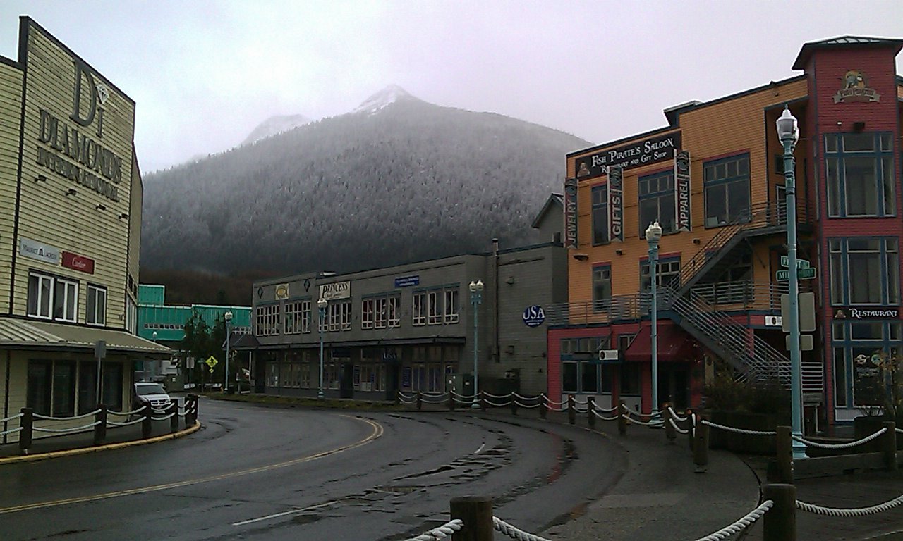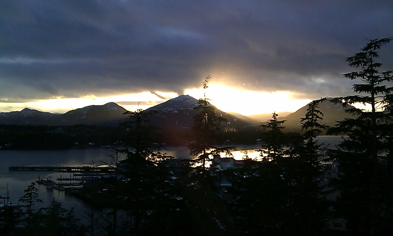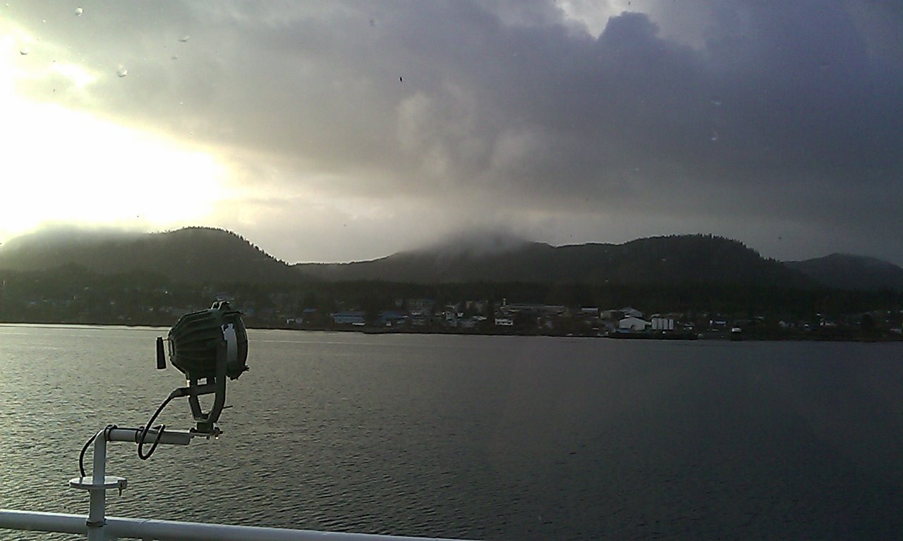 The weather is welcoming the Domination of Eiler to Alaska in its own way. It shifts among fog, rain, snow, and partly cloudy every fifteen to thirty minutes. U.S. government has NEXRAD weather radar through most of southern Alaska, but they don't even try to keep up with Ketchikan. Scenery is also welcoming. The town and its waterways are surrounded by mountains, in a way not even Montana can claim. The hotel is about eighty feet above sea level, and the snow level is about eighty feet above that... So far, windows have been the best way to view this. Scenery patrol tomorrow. Hotel patrol tonight. Alaska cable TV, prepare to submit! |