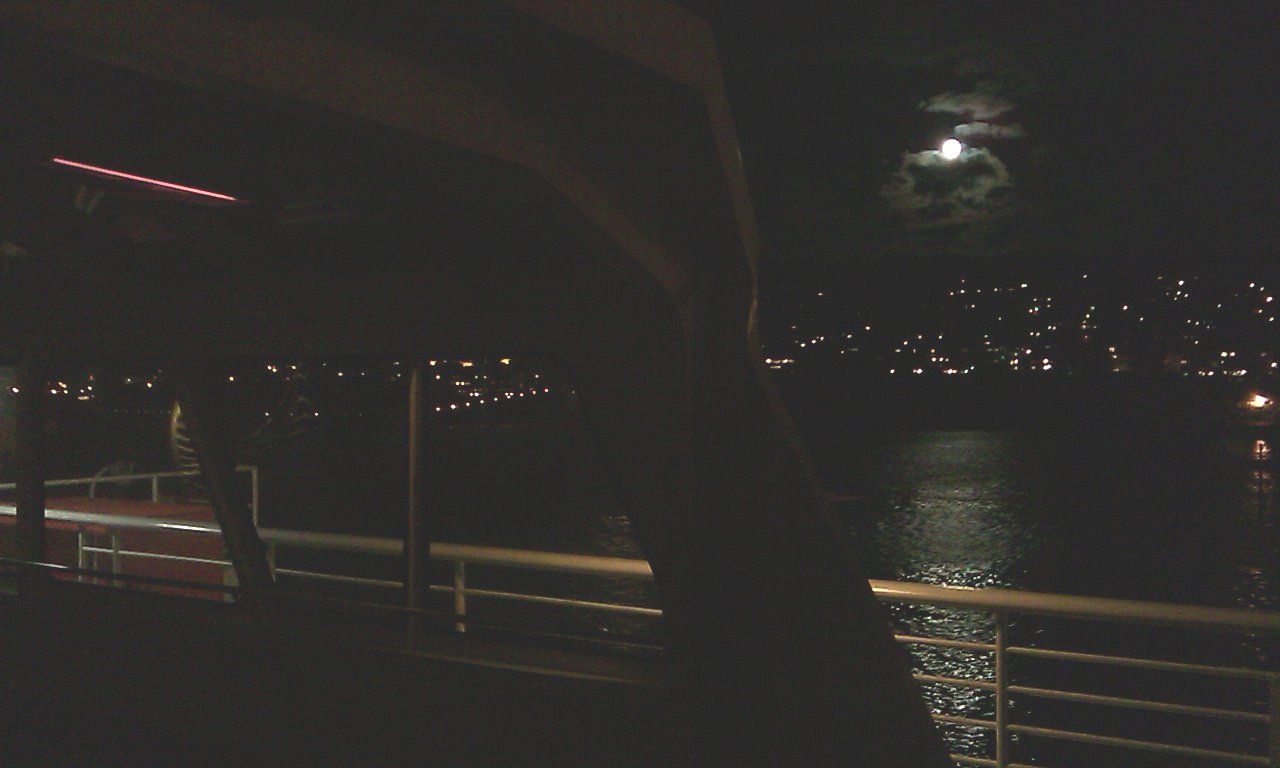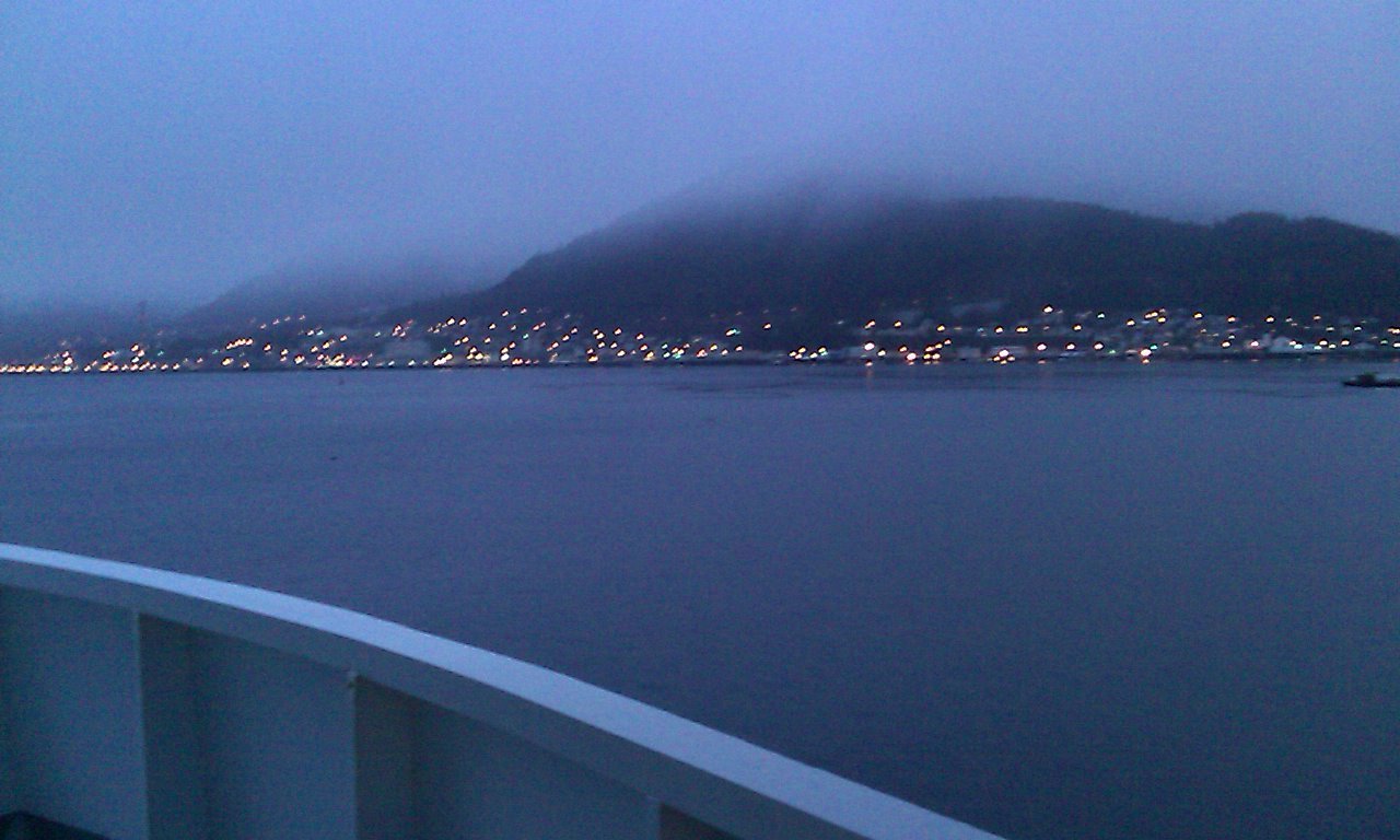 The Domination of Eiler is so intricately involved in phone company operations now, its engineering force dialed into an 8 am conference and gave a demo... Admittedly there are worse ways to start a vacation. This way got the Domination's expeditionary force ready to roll early. Friends were duly notified, the Domination observance of 11/11/11 11:11:11 would be in motion toward Alaska! Alaska got a legendary blizzard this week. A fraction of this storm moved south toward the District of Dominance as the expedition moved north to the Bellingham ferry terminal. How fitting. So, heavy rain on the drive. The prize of early motion (besides avoiding the rain while packing) was the city of Bellingham, southern terminus of the Alaska Marine Highway System. In Bellingham the Boundary Bay Brewery submitted, and so did a comic book shop, but the Whatcom County History Museum barricaded itself for Veterans Day. It's a good target for next Friday on the way back, if spending the day in Bellingham; typical hours 1 to 5 pm. Bellingham seems worth an extra day of vacation, just due to maritime hippie atmosphere - but only if bicycle weather. The city is not friendly to cars. The Archer Ale House served as ferry terminal bar, complete with "slider" sandwiches made of duck washed down with draft Chimay trappist abbey ale. Oh, is this the ferry terminal to Belgium? The boat itself is fine. The main amenities are cafeteria and lounge, all full of real Alaskans this time of year, and one other tourist from the armed forces in Alabama. Alaska says hello, and yes, Up North is great this time of year. The Alaska Marine Highway System is proud of its solariums: an open-air chamber with heat lamps. One really could sleep there with a sleeping bag, if one loves November enough. Others sleep in passenger chairs. But the Domination has a stateroom instead. Good investment. The boat observes Alaska time, so the Domination gets an extra hour this very night! But admittedly the schedule is loose on board. Dessert in cafeteria sounds good soon... after distant but spectacular night views of Vancouver and Whistler Mountain. |