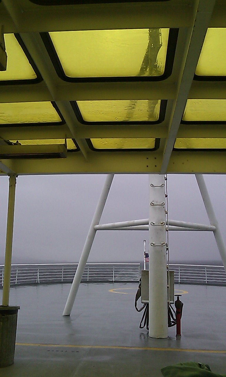 Full day on boat. Cross-sampled humanity. Spent most of the day reading "Ice Reich", lurid historical fiction whose name practically says all. But it does involve lots of sea action on cold waters. Therefore left this book at Alaska ferry ship's book exchange. Took modern Western historical fiction "War Cry" in exchange. Skipped to end. Practically same story as Ice Reich, with Oklahoma and Cheyennes in place of Antarctica and Nazis. Quickly donated "War Cry" back. One family from the Yukon was camping out on the sun deck. The daughter had transformed a platform and several piles of lounge chairs into Rainbow Pony Play Land. All adults present agreed, this was more fun than the ferry's own playland. One e-bookish young lady in the bar was traveling to her husband and daughter, home from military mission in Anchorage. As often happens in bars, people compared cell phones. Hers had survived jumping out of planes. She won. ... Well then. Now let the commentary end. |