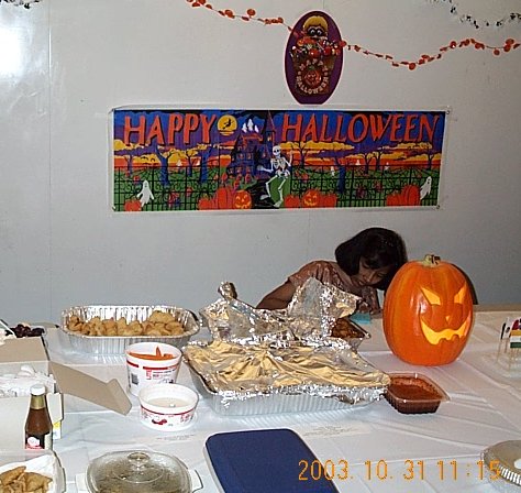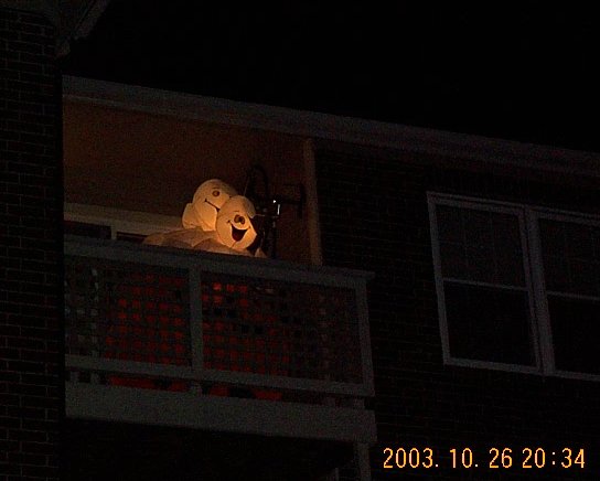 | Scott got his apartment ready for the party by buying a giant inflatable pumpkin, complete with ghosts. |