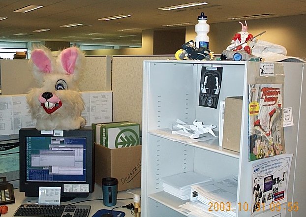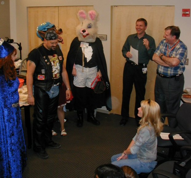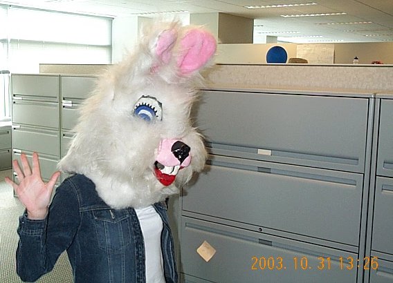 | Thunder Bunny came in late to the costume contest. |