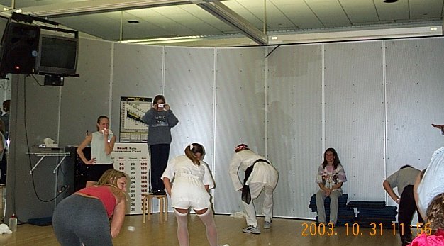 | He was busy taking pictures at aerobics class. |
