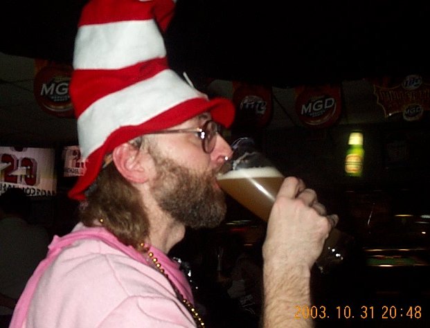 | Scott dressed up as The Colon in the Hat for his after-work party. |