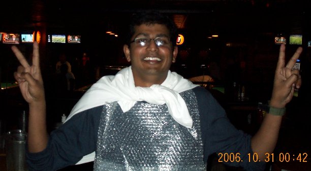 Afsheen came as the Discount Bubble Boy. |