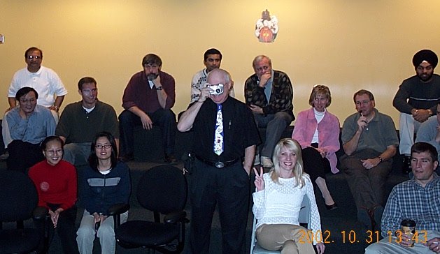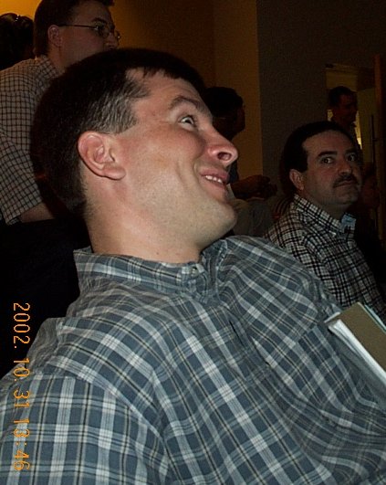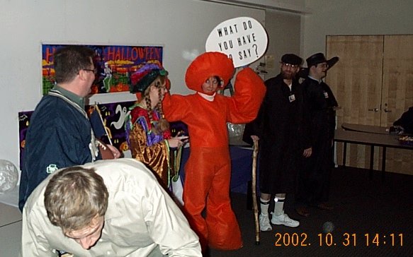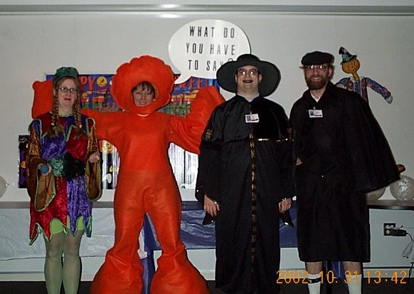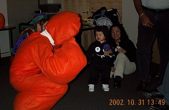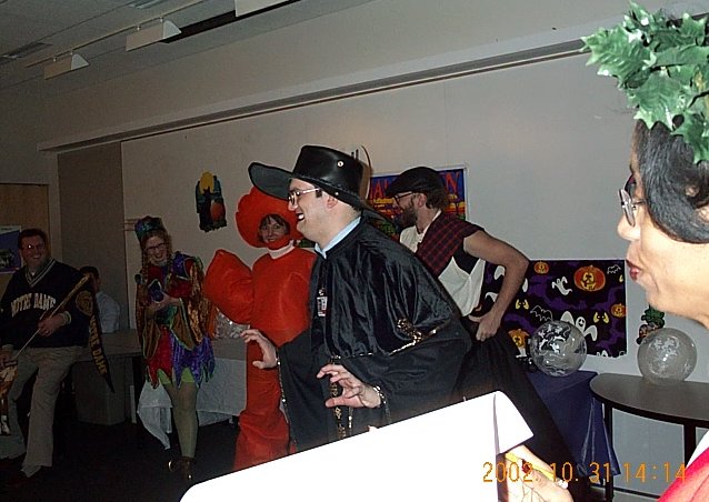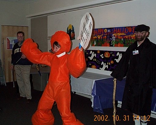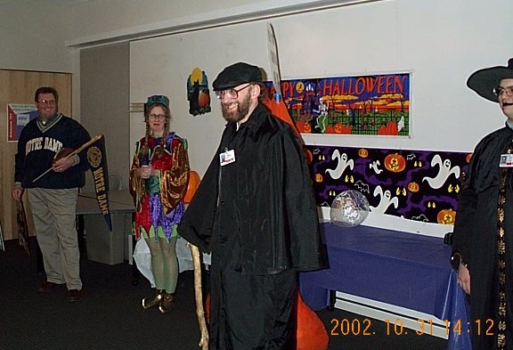 | Scott was scary once he took off his raincoat, so he won the Scariest Costume award. (Steve thinks it was fixed.) |