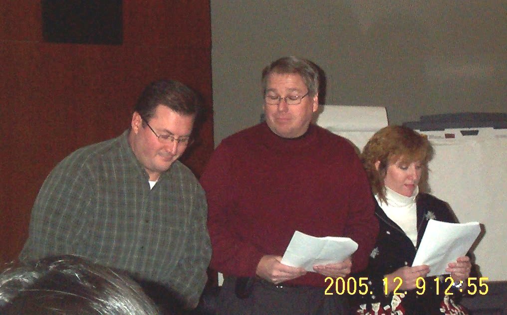 Not to be outdone, Scott made up a harmonica part for a phone-company version of "Jingle Bells". Before yesterday, Scott couldn't play harmonica. Hey, it beats singing in a talent show. |