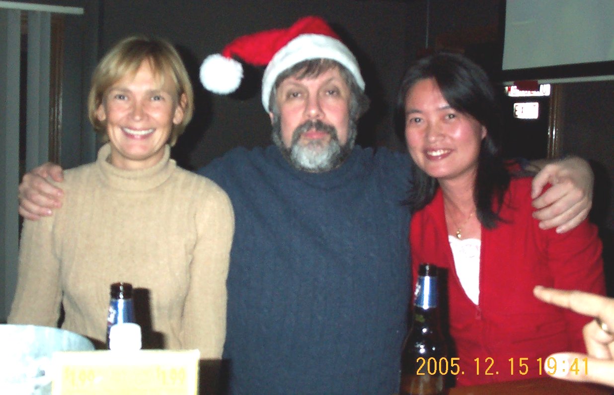 Scott was busy because he was performing. This being an Xmas party, Scott dressed up as Santa. And, of course, real Santa doesn't need a fake beard. |
