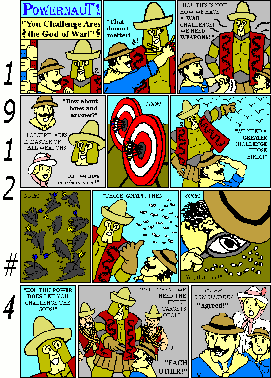 Along those lines... I *intend* for this series to raise lots of fanboy questions. Like, if a Powernaut can't punch out a god, can he use some other kind of weapon to win? And was that god maybe faking the fight? Heh.