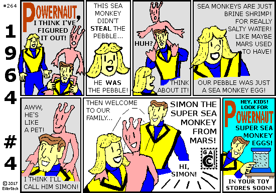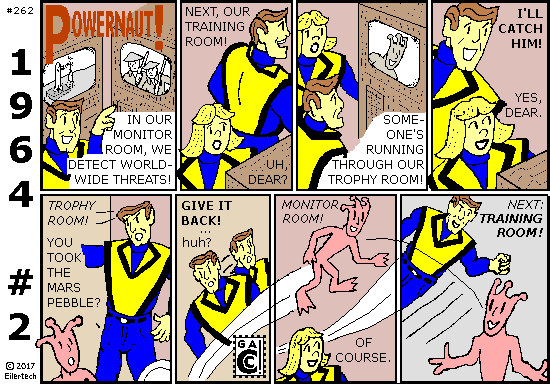 ... Well, the winner was obviously Powernaut 1964. This series was so easy, I absent-mindedly colored all the backgrounds during Sunday brunch today. And that is it. I now intend to publish the whole thing at once! So, happy Winter Solstice holidays to you all, and I'll probably see you in January.