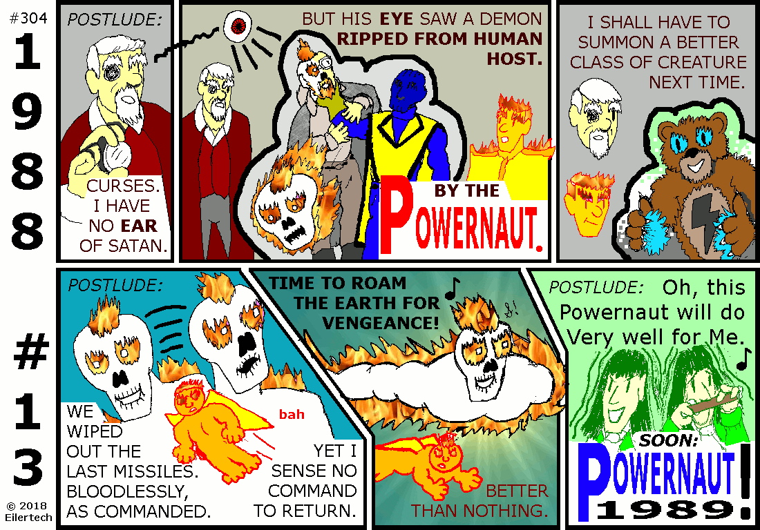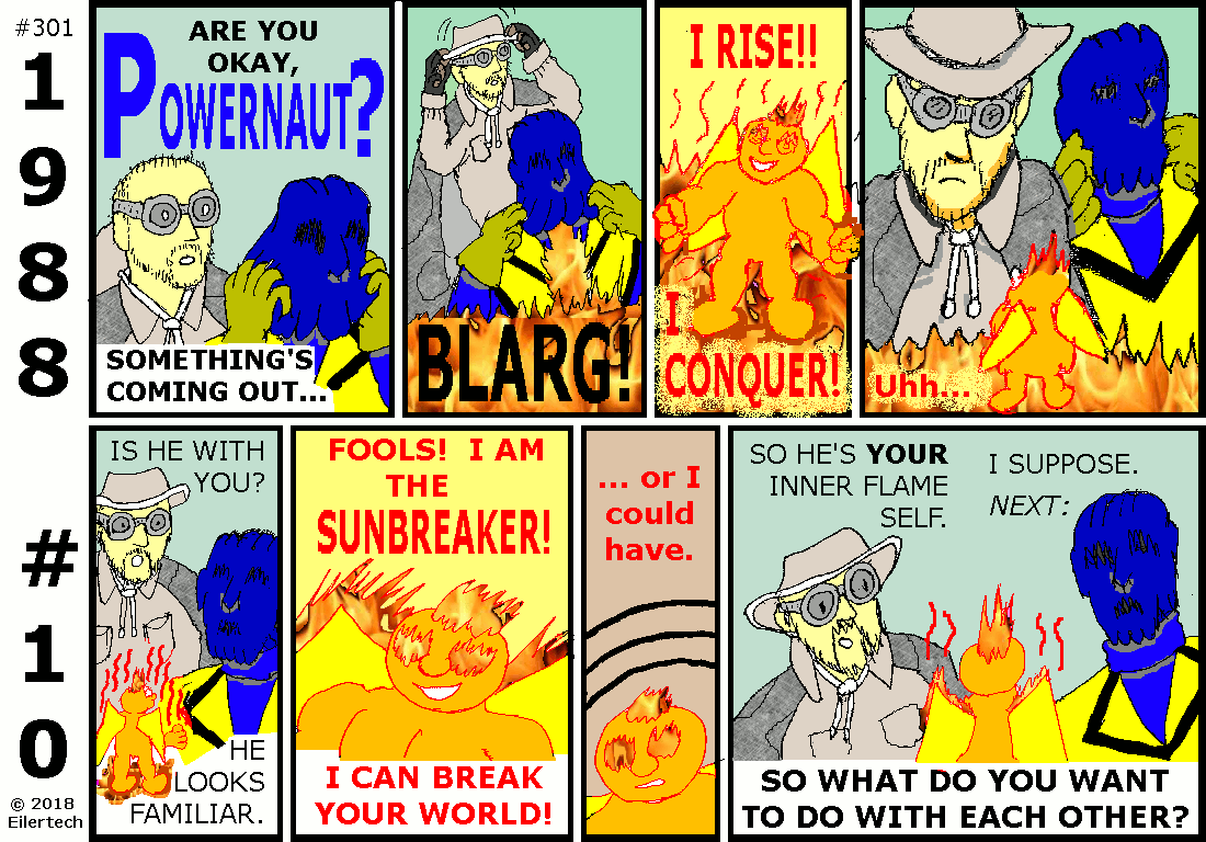 I have tried to increase my artistic standards for this series, and for Powernaut Comics through the 1990s. I need to be ready for really good production values in that decade. I used to say often, when I wrote a good story, "This is such as I have never done before." I think I can say that again now.