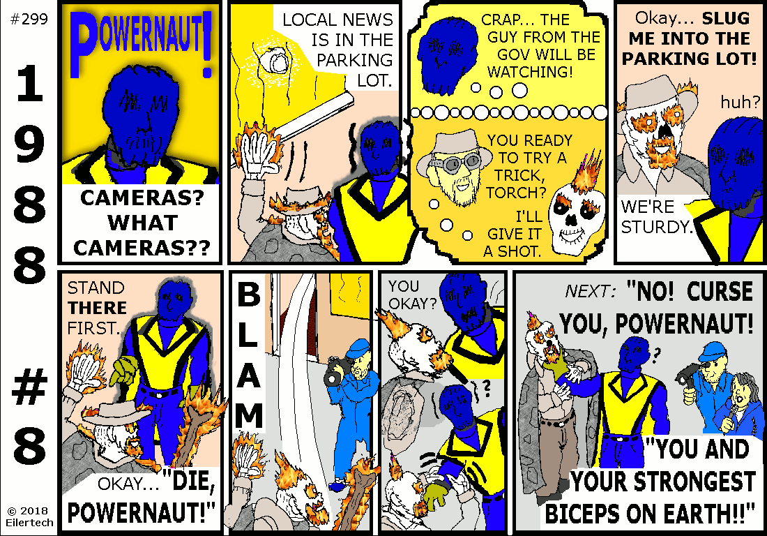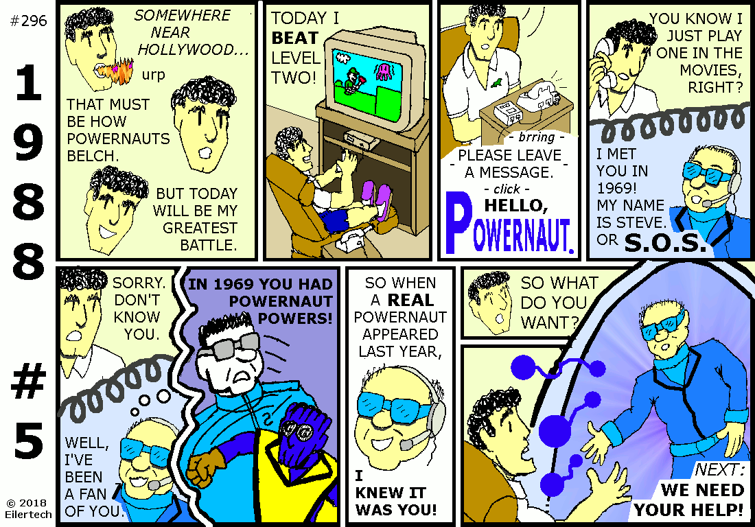 Mr. Samuels correctly notes, my memories of this incident are different than what Powernaut Comics shows. That happens a lot. But that doesn't mean either of us is wrong. In my world, it usually means a reality shift. But I do remember these things that the Powernaut's comic shows...