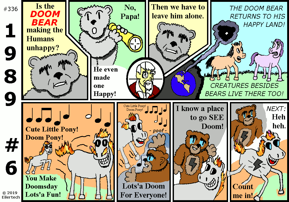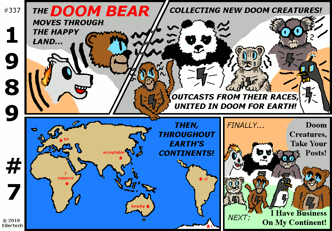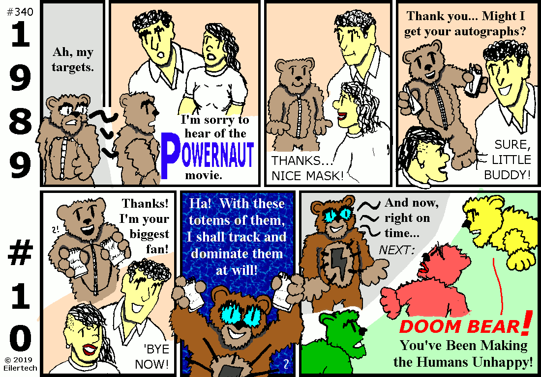 I would have guessed either Psychovant or Pizza Fu would have taken over Powernaut Comics first. But the Doom Bear is the senior character of those three, so he has more chances. And at least it still took a funny animal to do it.