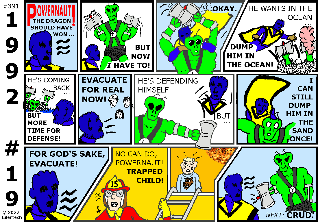 Heh. I've had to consider my priorities for Powernaut Comics lately. Shall I continue to slog through the 1990s, or jump straight to 1999? But 1992 Part 2 starts with roughly the most innovative comic strip I have ever done. I can't stop now.
