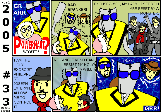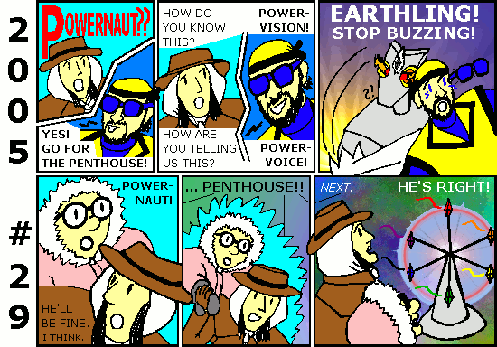 GreetingHello, my Power Patrol! Welcome to more of my 2005 adventures - me vs. the modern age! This episode finishes the Big One: me vs. a murderous alien creature for the fate of the Earth! My pal Wyatt Ferguson has already written his version in his own web log! So I arranged for him to do guest commentary! Enjoy! (signed) The Powernaut!