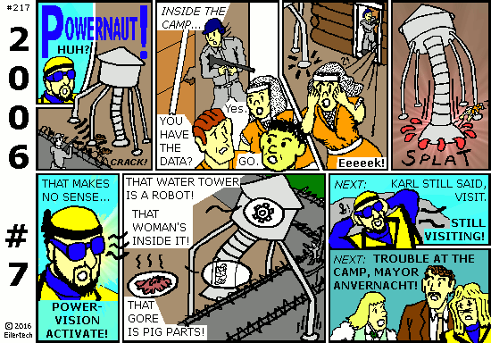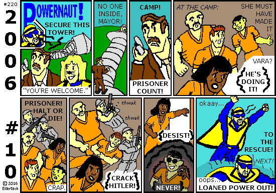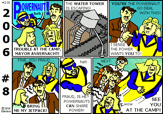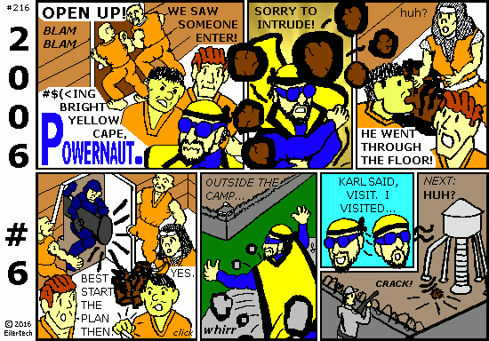 The Big Thing for 2016 is, a big-budget superhero movie based on an old story from 2006 about heroes vs. heroes vs. governments. What better time to begin to publish Powernaut 2006? This "Part 1" story actually *was* influenced by the "Civil War" comic.