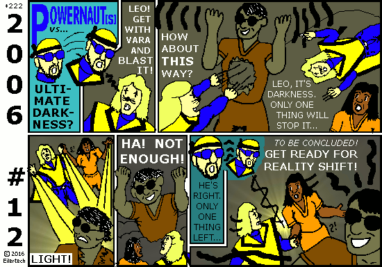 Since I actually wrote this story ten years ago, I have to admit that Powernauts don't win this one. Since I put in a graphic depiction of a world consumed by darkness, I have to admit that Powernaut stories can't always be light-hearted or funny. But I hope at least I put in the proper amount of pathos.