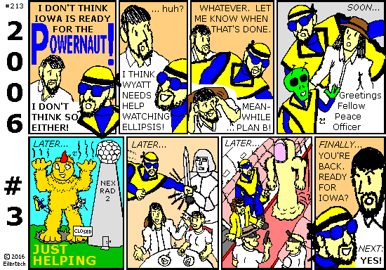 Heh, the artwork of this story led to some commentary. And some of that commentary has led me to realize how Wyatt Ferguson became a Familiar of the Ultimate Darkness. (ref: later in 2006 - and no Powernaut!) ... That's part of the reason I do these Powernaut stories. All my other stories make more sense when I do.