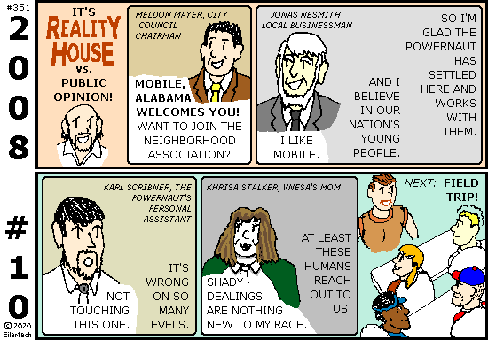 GreetingHello, Readers! Finally, a look inside the Power Patrol! The whole world's watching! (signed) Scott Eiler, Publisher for Powernaut Comics, 2008.