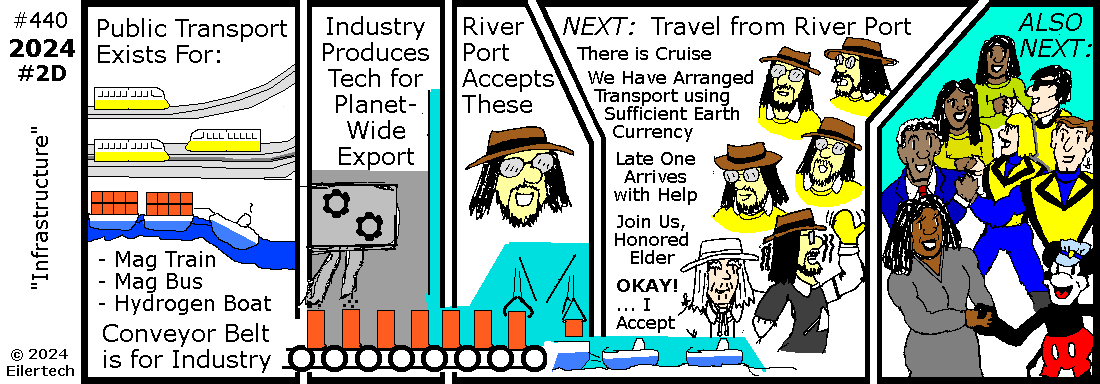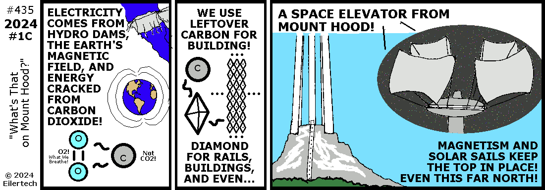 People are offering incredible designs for the use of Power City's carbon fiber technology. I've even seen a proposal for building a mountain-sized dehumidifying tower in Florida to ward off hurricanes. Personally, I feel that would be an incredibly bad idea. But I was around in 1968, when humanity couldn't agree on anything. It's nice to know that humanity can now put out the big ideas, and still reasonably decide about them.