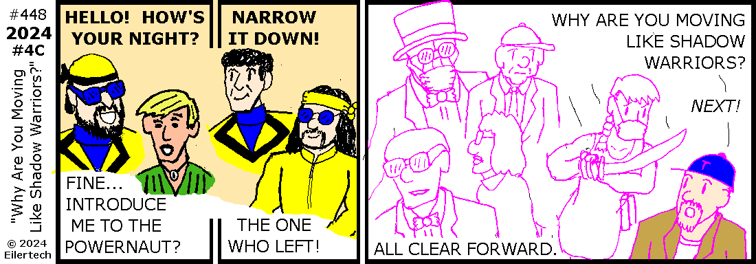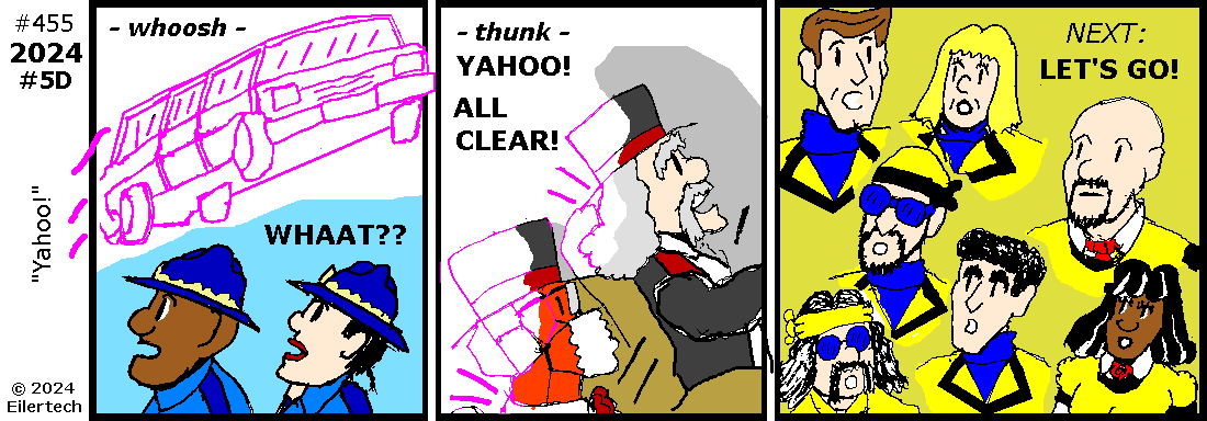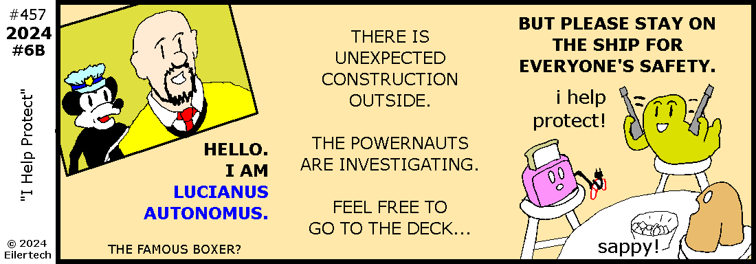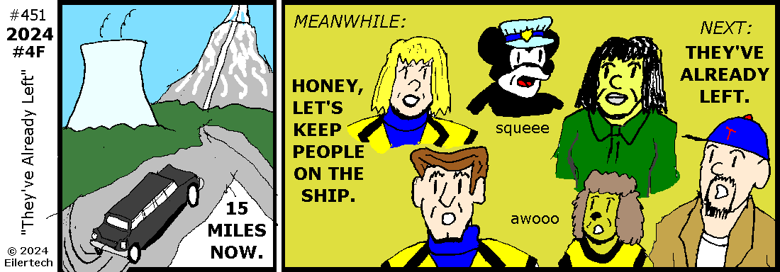 Steamboat Willie / Mickey Mouse are of course public domain as of this wonderful year 2024. "Slime" are copyright © 2024 by "candycanearter". Tanza Late is copyright © 2024 by Arthur Spitzer. The characters shown here from the Legion of Net.Heroes are available for public use from their respective authors. The story, artwork, and all other characters in this fiction are copyright © 2024 by Eiler Technical Enterprises.