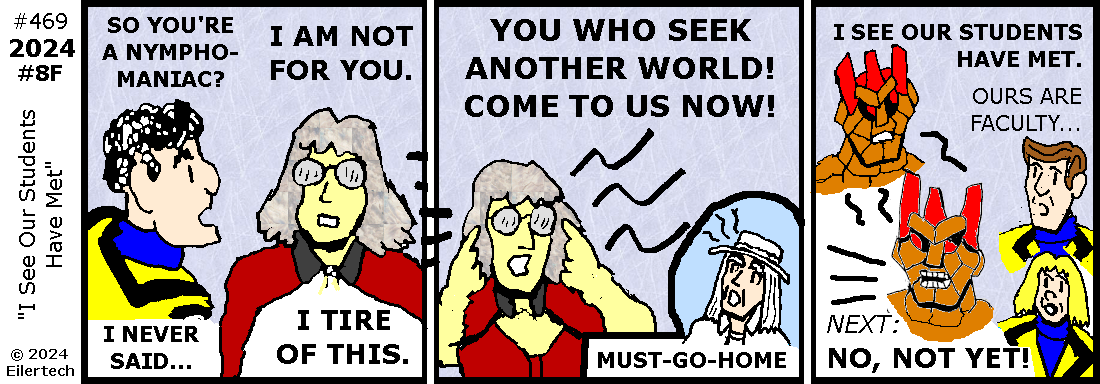 Wait, your telepath is an alien nymphomaniac? And she got that way on Earth?
