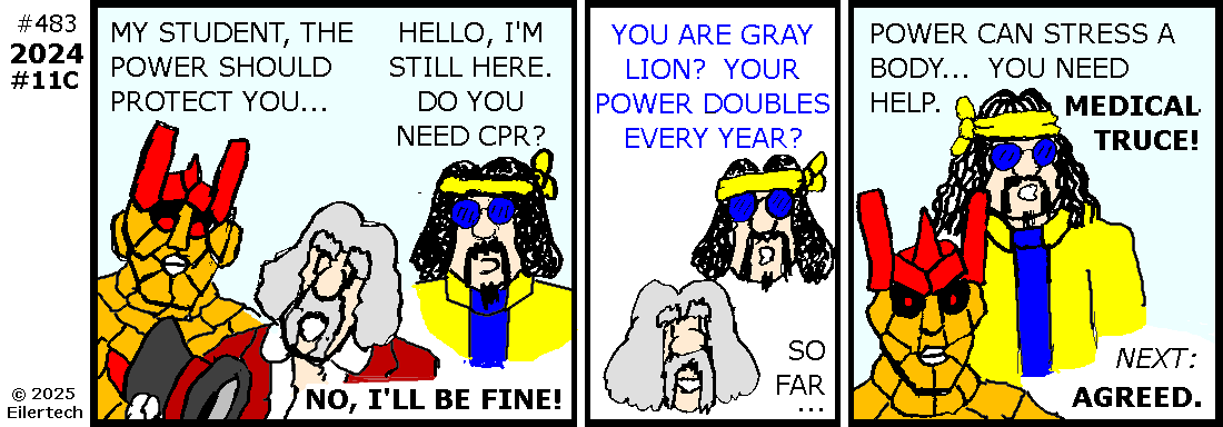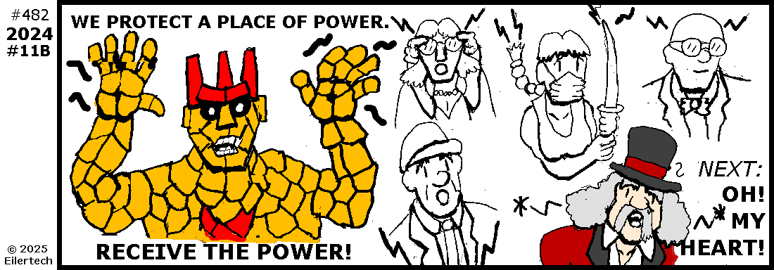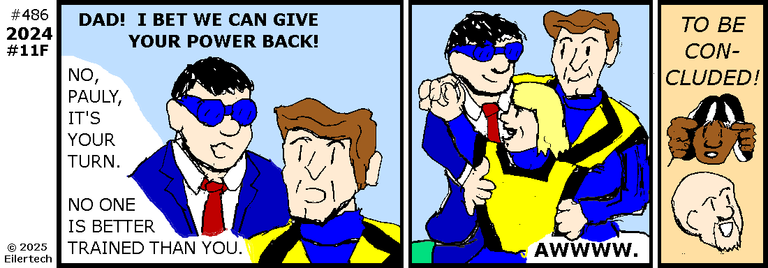 By that same reasoning, I may skip a lot of Powernaut 1990s. Dangling plot threads can be wrapped up in just a few strips. (In the publication universe, I can just say Powernaut Comics went bankrupt then, in the comic book speculation bubble. Even Marvel Comics went bankrupt then.)